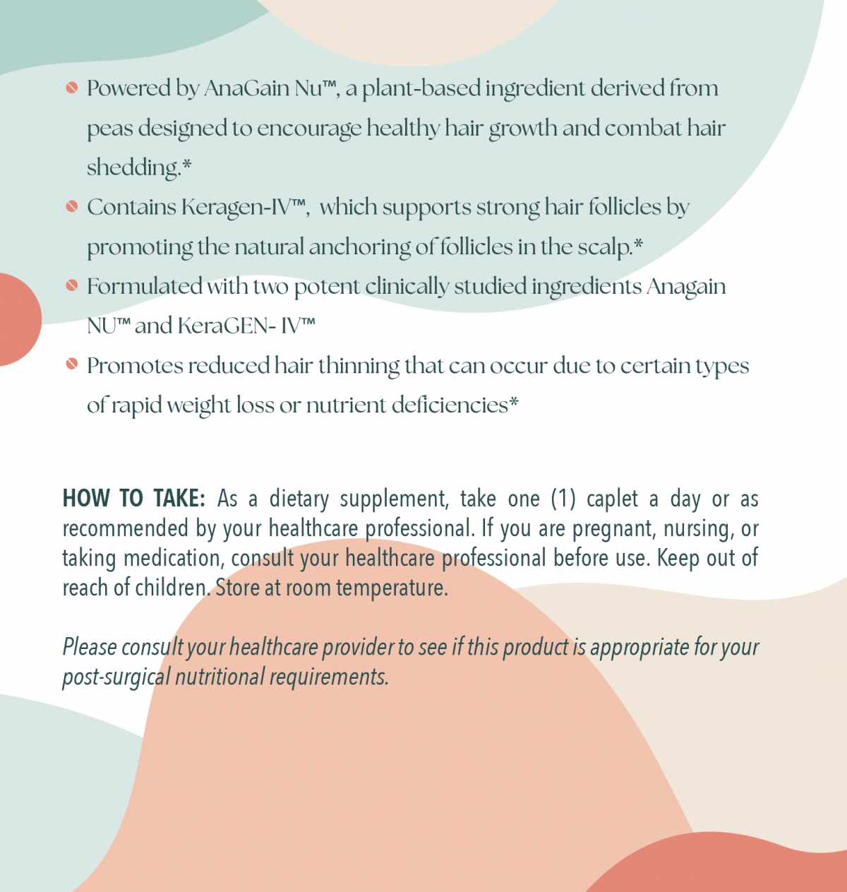 Powered by AnaGain Nu™, a plant-based ingredient derived from peas designed to encourage healthy hair growth and combat hair shedding.*