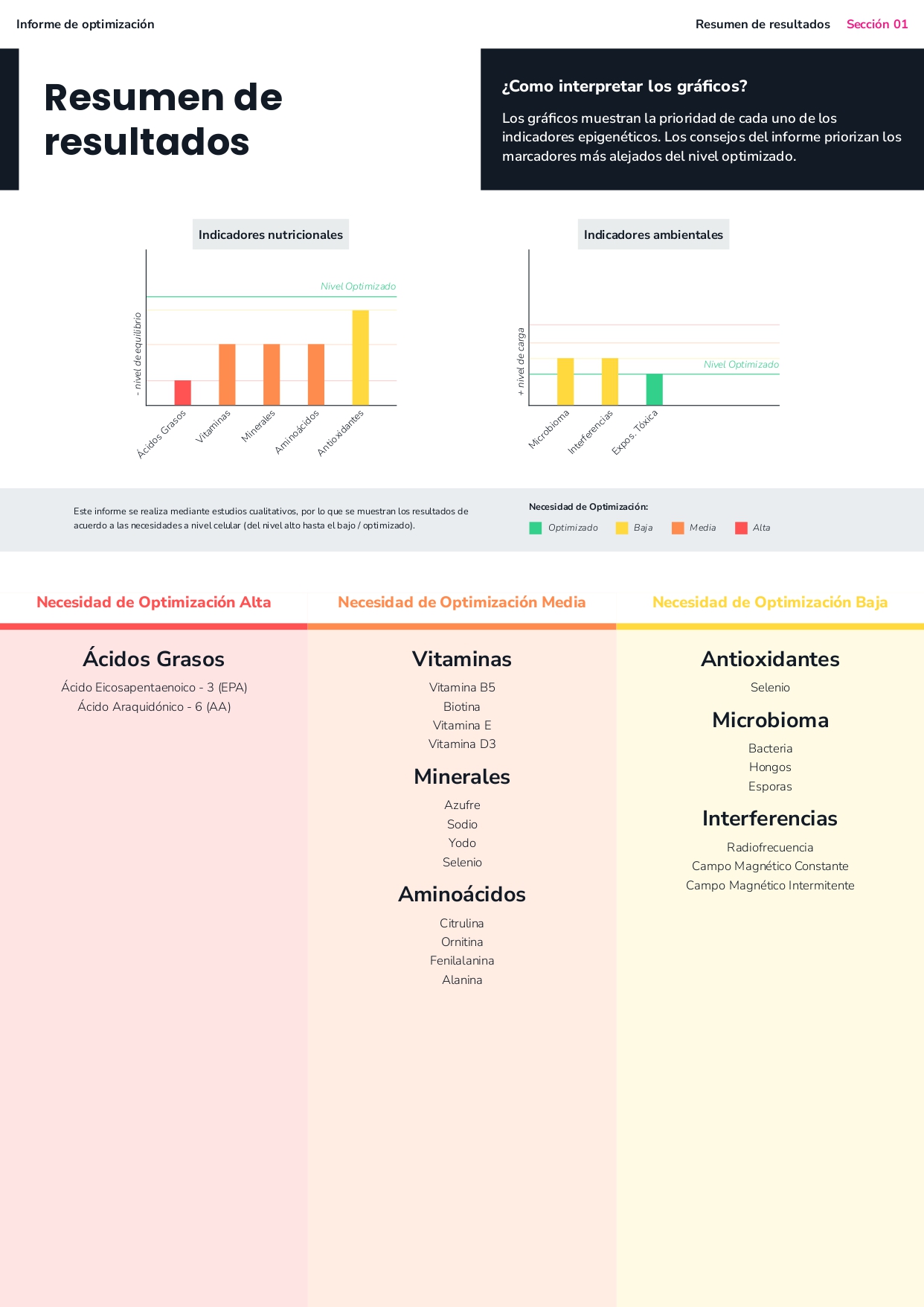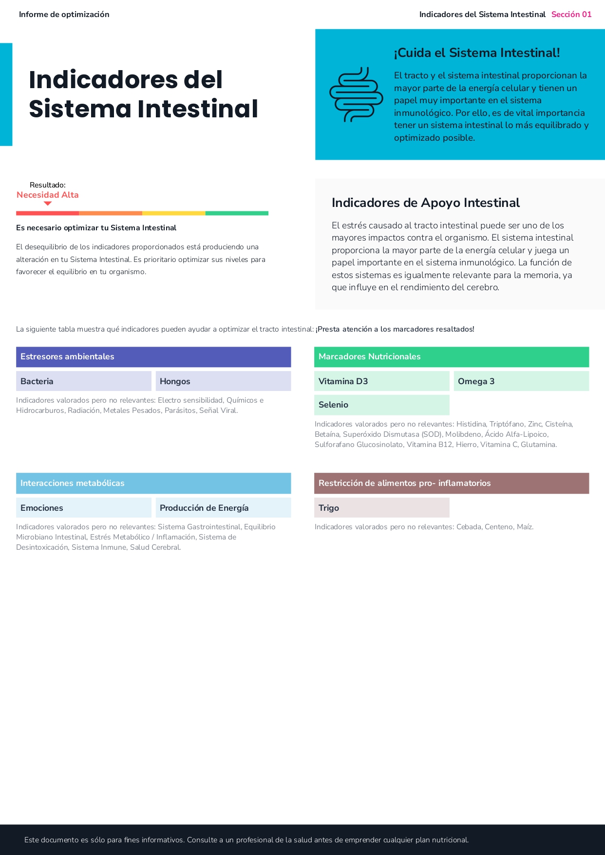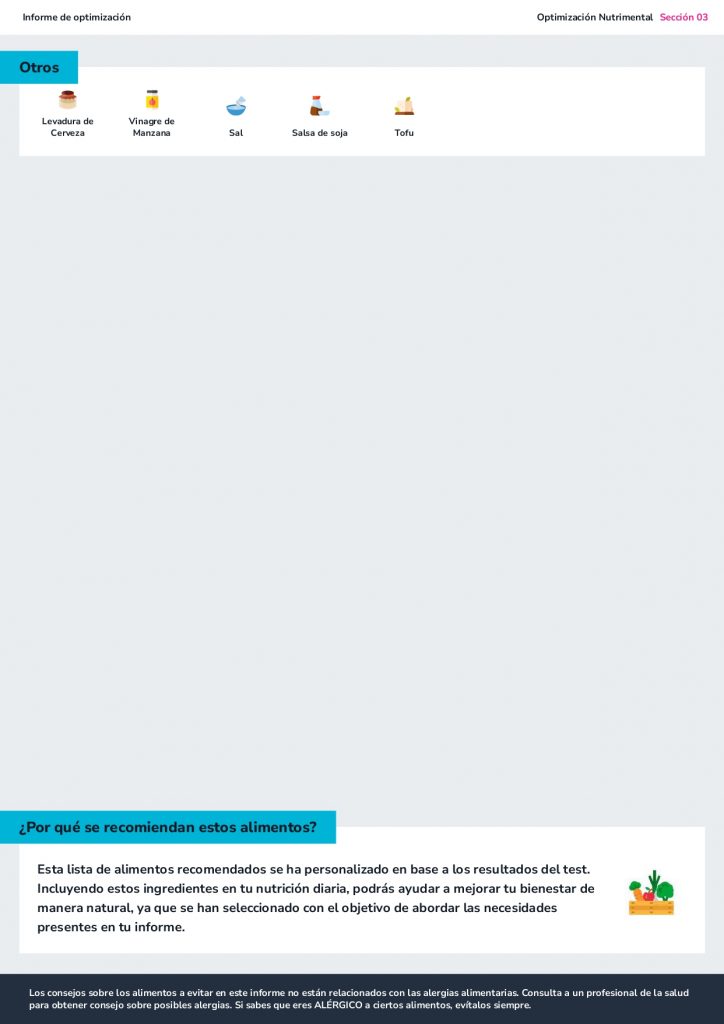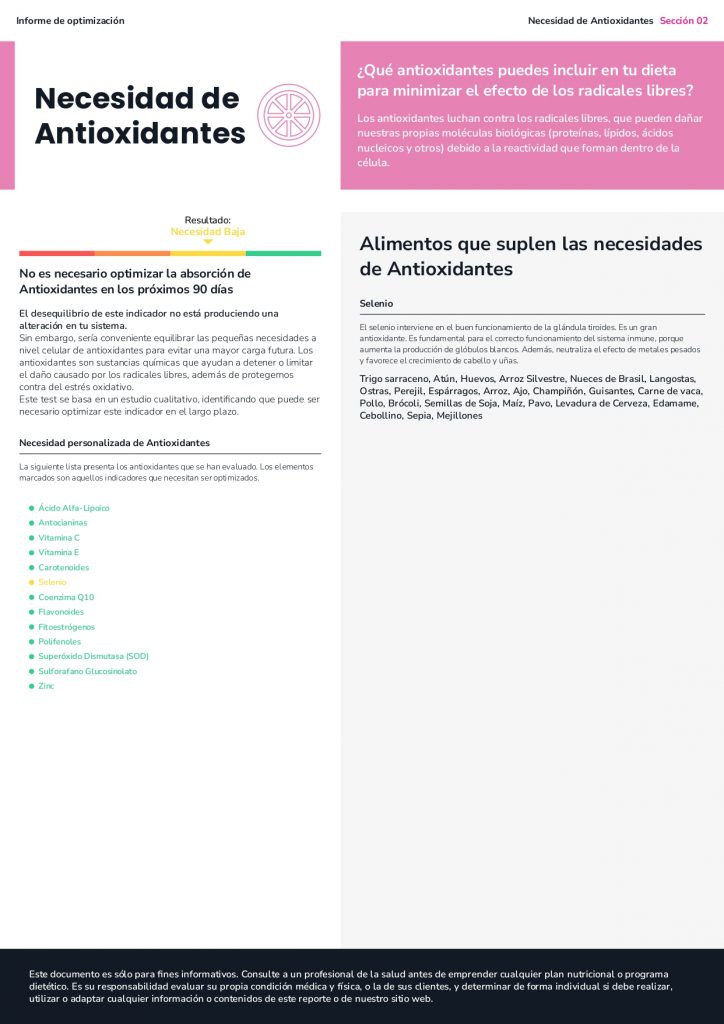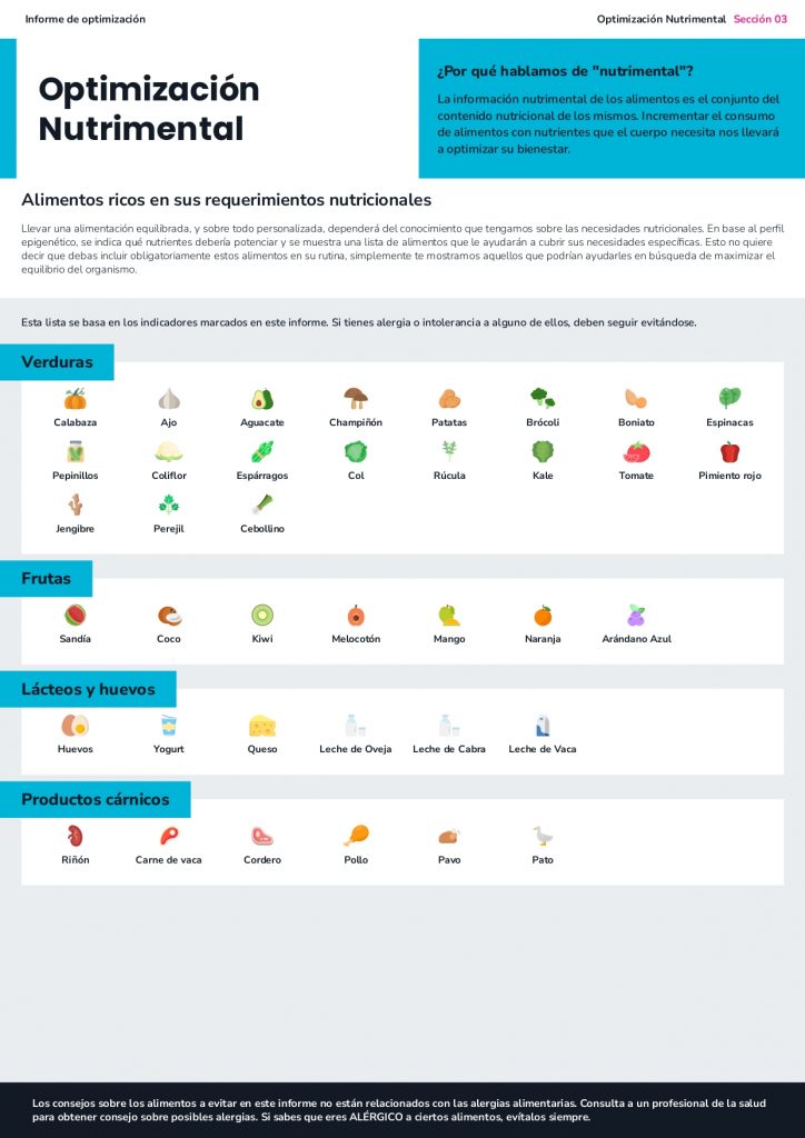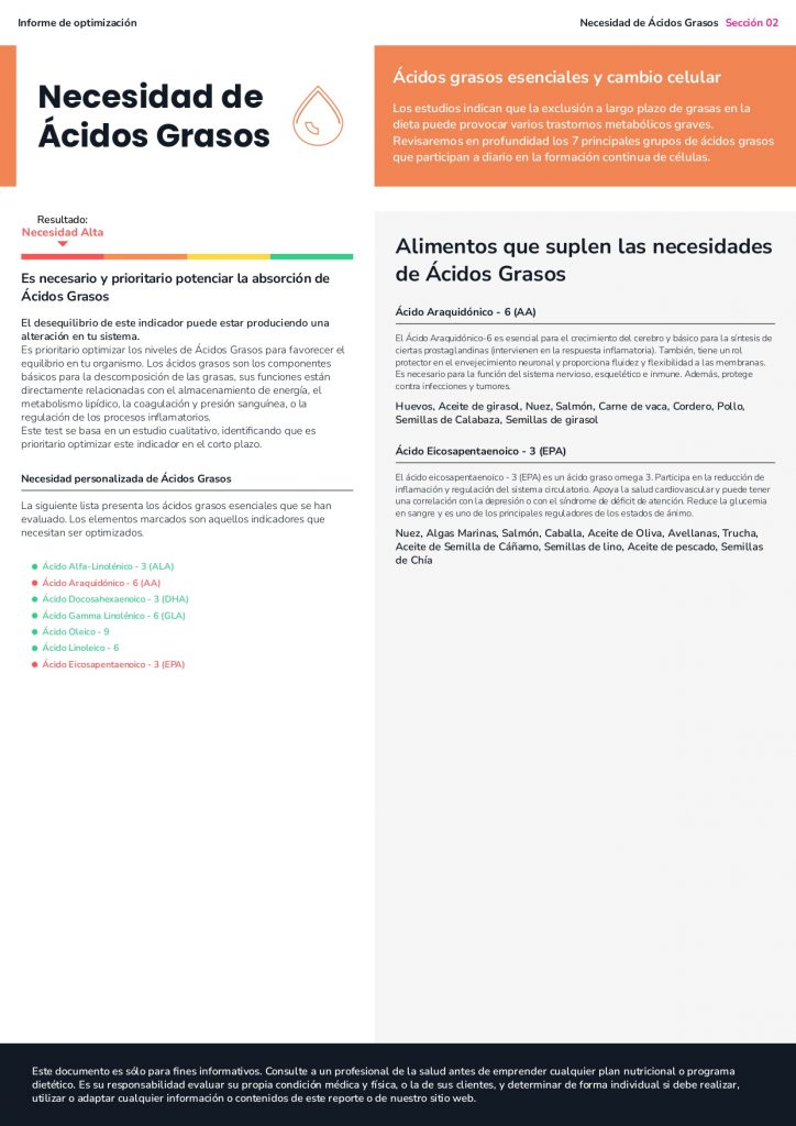 - El estudio obtenido contiene información nutricional relevante para la optimización funcional de la persona.