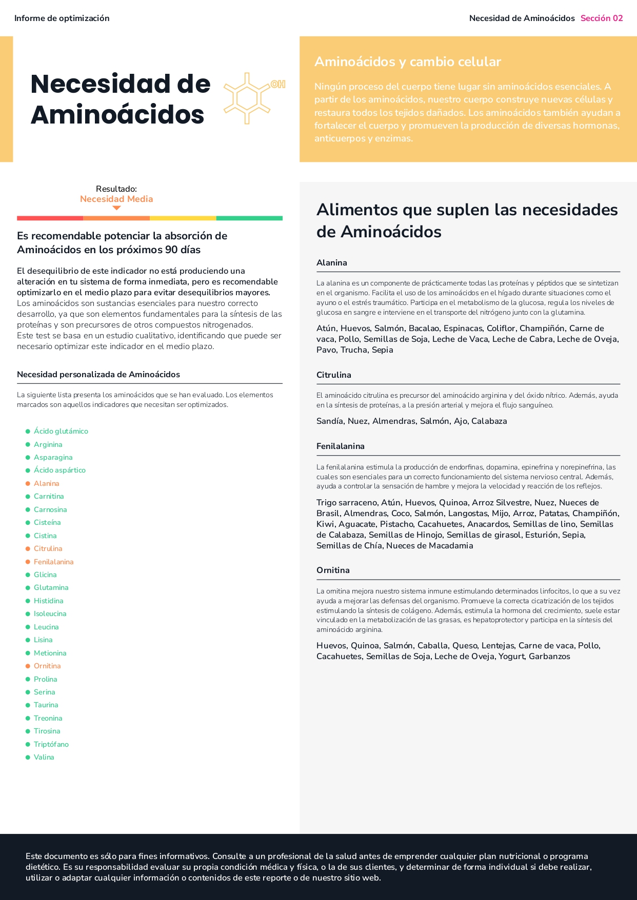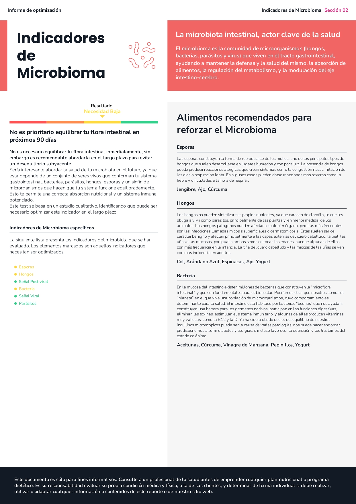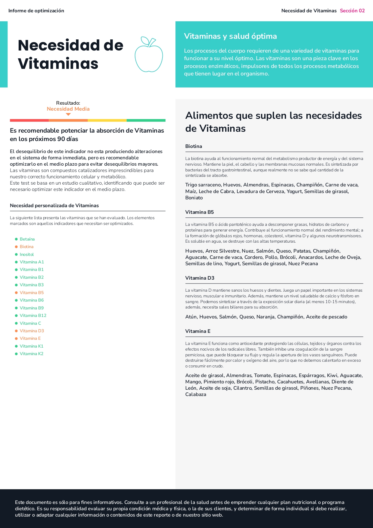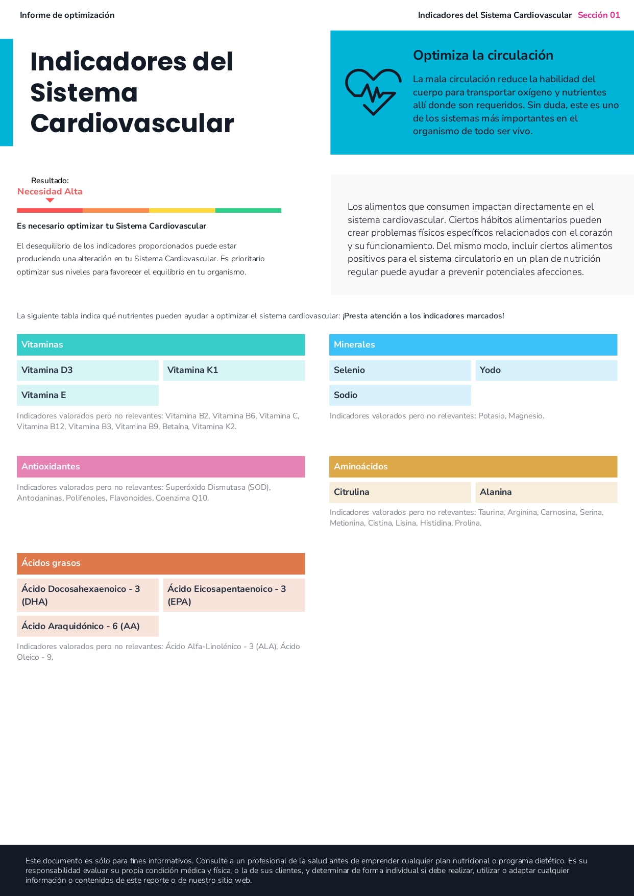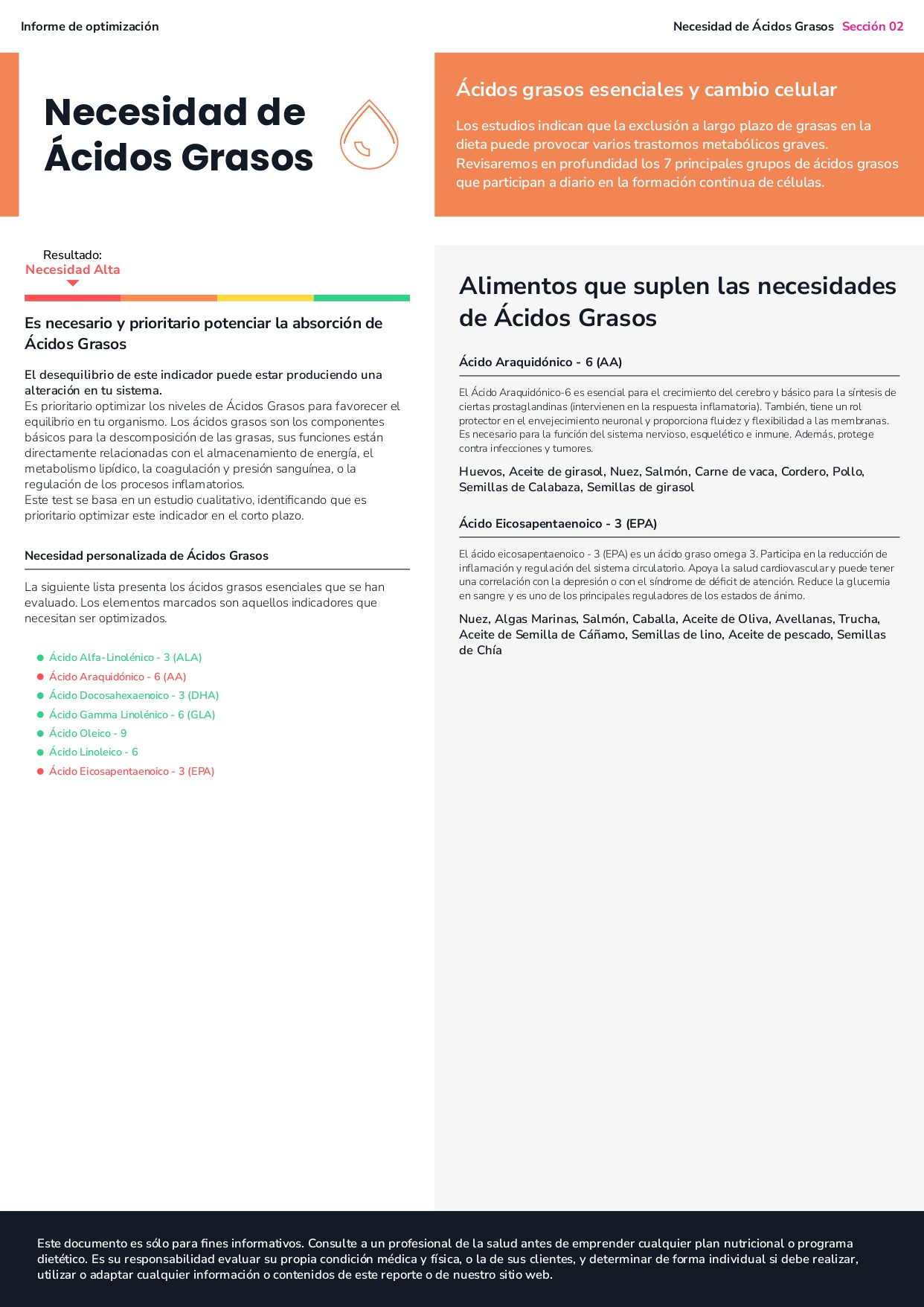 - El estudio obtenido contiene información nutricional relevante para la optimización funcional de la persona.