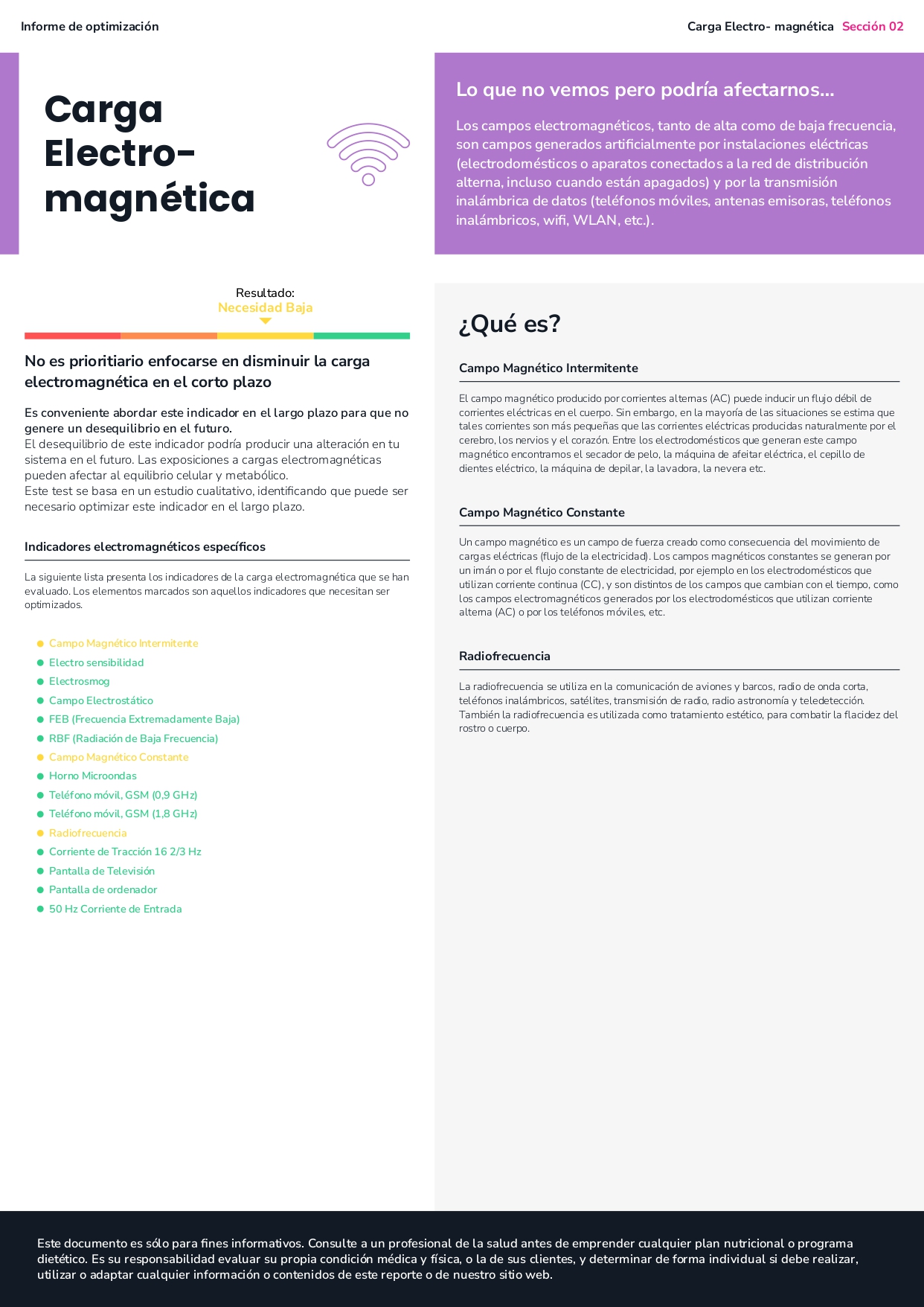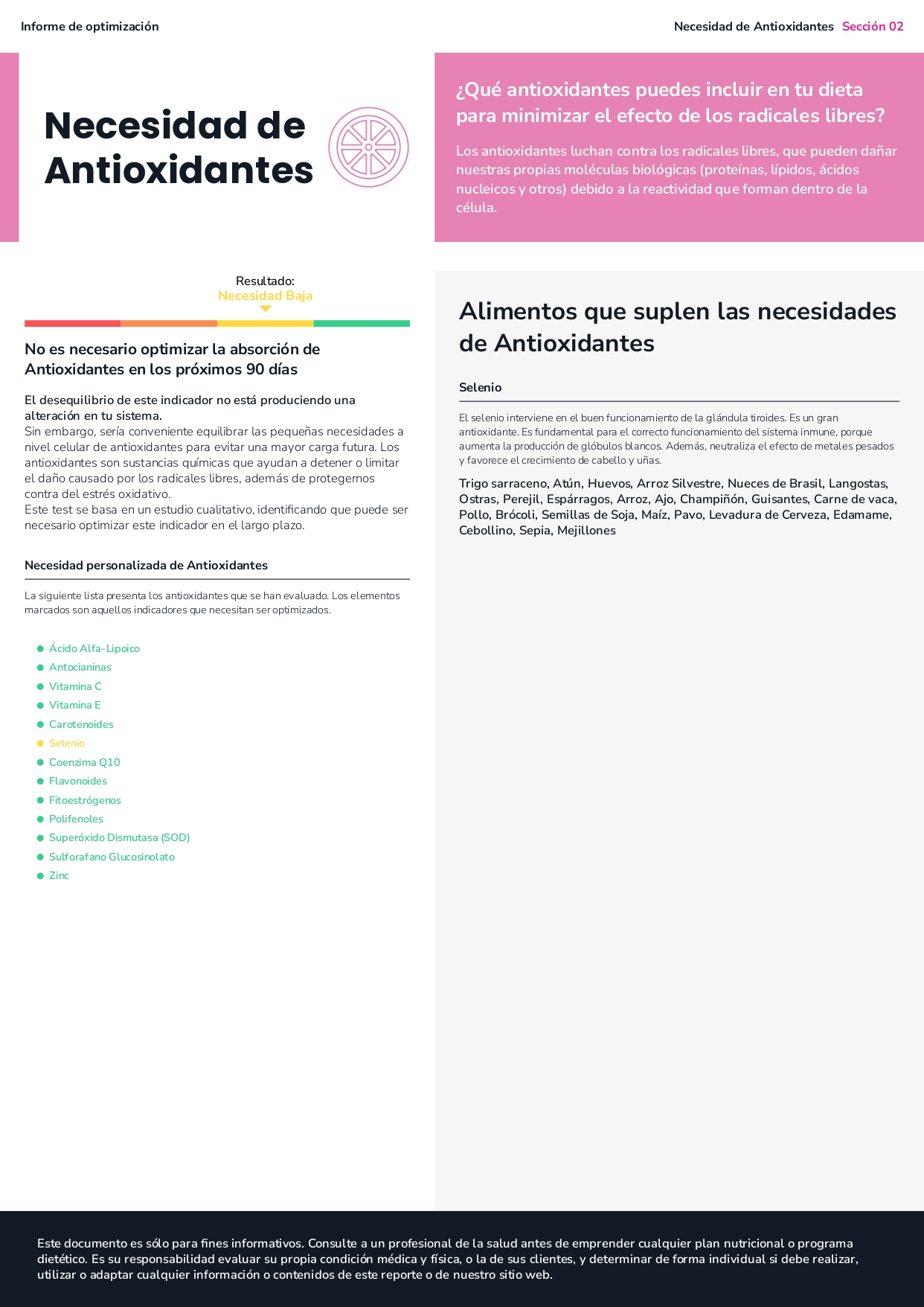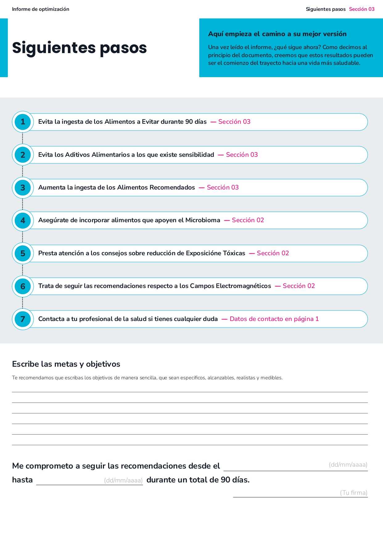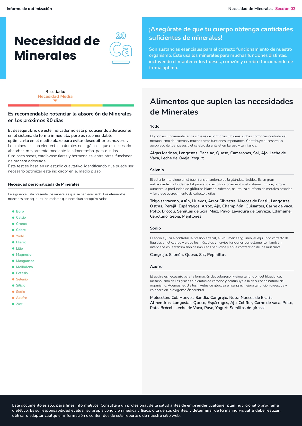 - El estudio obtenido contiene información nutricional relevante para la optimización funcional de la persona.